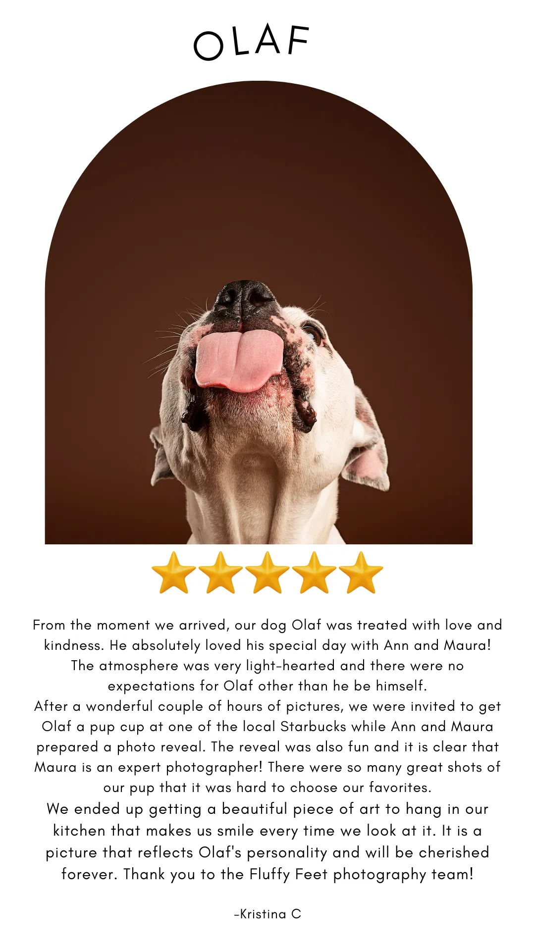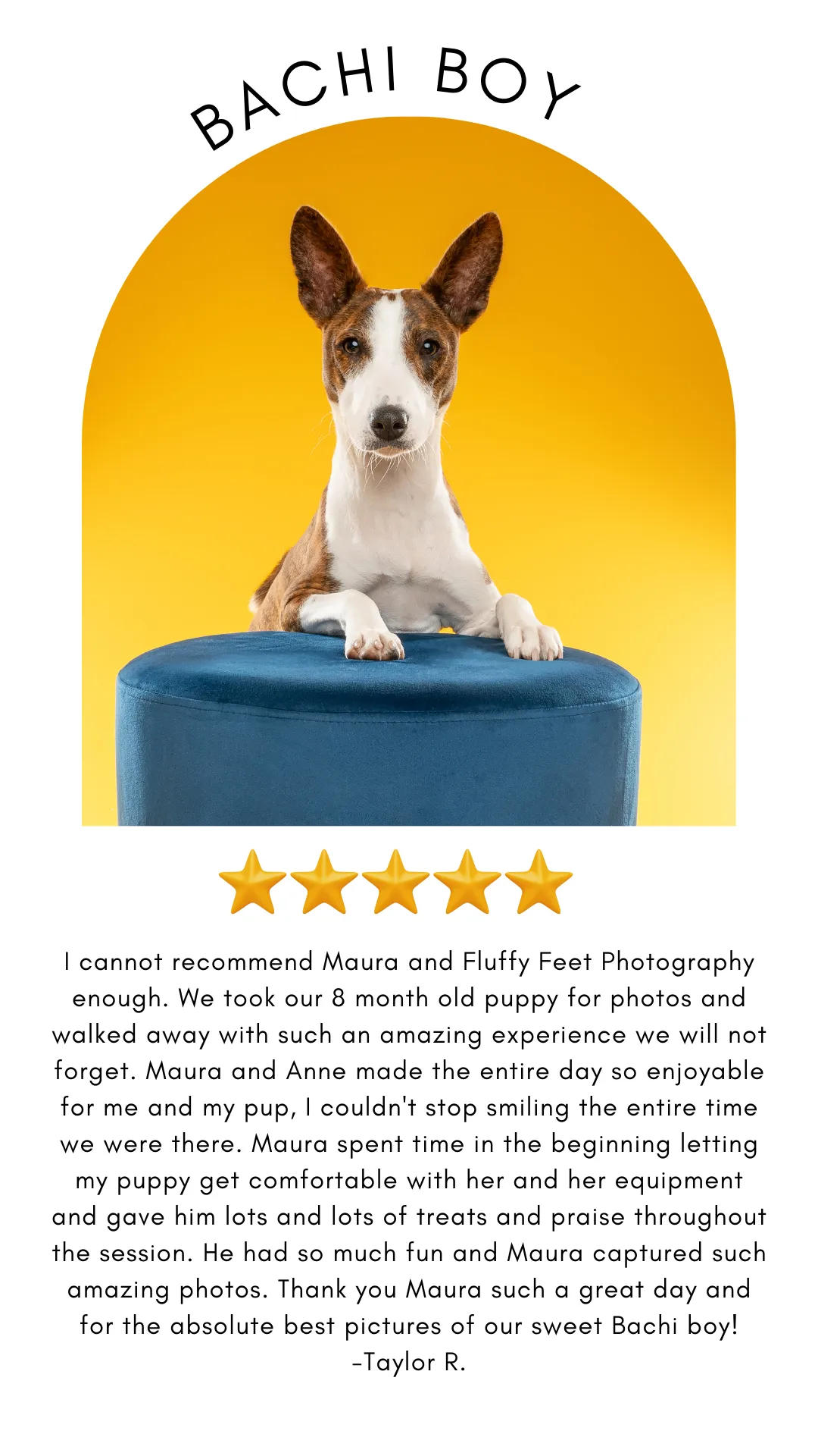 The first thing you need to do is to make the amazing decision to take your sweet pup to get unique, one of a kind portraits at Fluffy Feet photography.